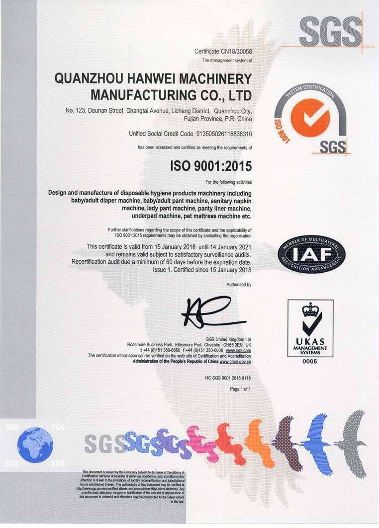 泉州市漢威機(jī)械制造有限公司是一家集生產(chǎn)、研發(fā)、銷售、服務(wù)為一體的高科技企業(yè)。一直秉承盡善盡美的思想,未來(lái),泉州市漢威機(jī)械制造有限公司將在現(xiàn)有的基礎(chǔ)上,努力使“漢威制造”始終處于國(guó)際技術(shù)的水平,打造“百年漢威”。為實(shí)現(xiàn)這一目標(biāo),漢威公司務(wù)實(shí)創(chuàng)新,近日公司引進(jìn)ISO9001:2015質(zhì)量管理體系,通過(guò)對(duì)全體員工的宣傳、培訓(xùn),建立了一套符合國(guó)際標(biāo)準(zhǔn)要求的質(zhì)量管理體系,并嚴(yán)格按照質(zhì)量管理體系文件中的規(guī)定執(zhí)行、實(shí)施,在執(zhí)行過(guò)程中不斷的改進(jìn)和完善,使公司形成了一個(gè)系統(tǒng)、完善的管理體系,提高了全體員工的工作質(zhì)量和工作效率,進(jìn)一步保證了產(chǎn)品質(zhì)量、服務(wù)質(zhì)量和公司的管理質(zhì)量,為公司持續(xù)發(fā)展,不斷改進(jìn)和提升奠定了堅(jiān)實(shí)的基礎(chǔ)。審核專員在我司特派專員的陪同下,各個(gè)部門的全力配合下,對(duì)我司質(zhì)量管理體系進(jìn)行了細(xì)致嚴(yán)謹(jǐn)?shù)膶徍?,肯定了我司質(zhì)量管理工作。后ISO9001:2015質(zhì)量管理體系認(rèn)證順利通過(guò)。于2018年1月15日獲得了ISO9001質(zhì)量管理體系認(rèn)證證書(shū)。