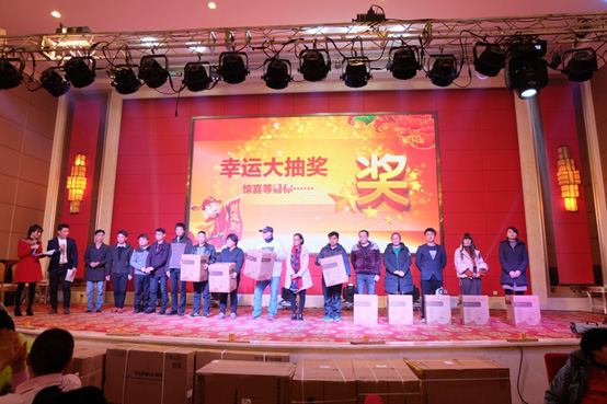 精彩的演出贏得了家人們的陣陣掌聲,晚會的抽獎環(huán)節(jié)更是讓晚會進(jìn)入一個又一個的歡樂高潮!每個中獎?wù)吣樕隙紝懼鴥蓚€字:開心!