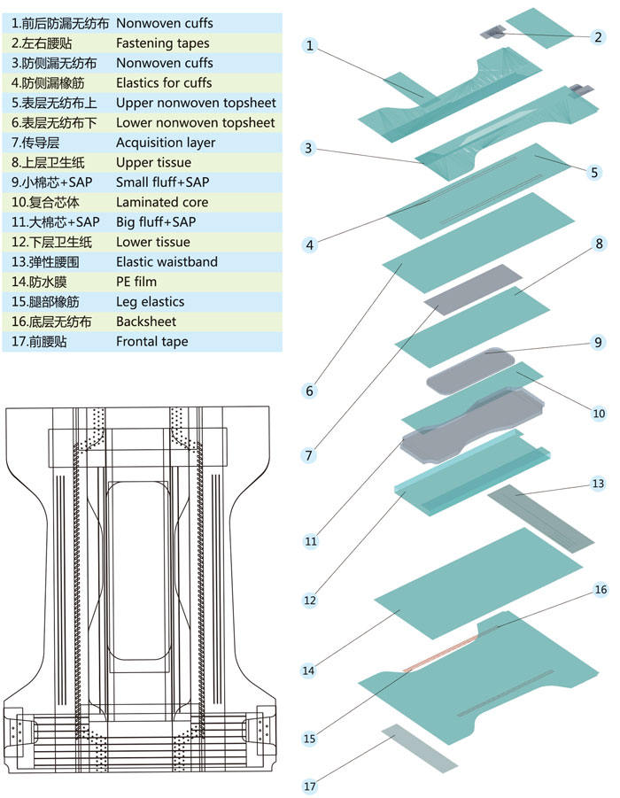 環(huán)抱式彈性腰圍高端嬰兒紙尿褲設(shè)備800PPM